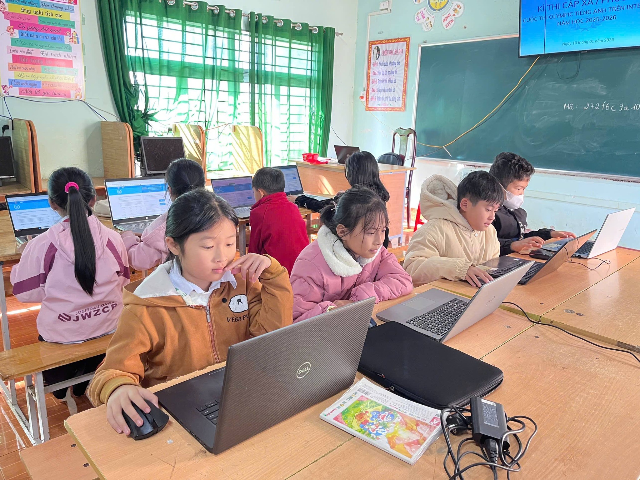 Kì thi là sân chơi trí tuệ bổ ích, giúp học sinh rèn luyện kỹ năng tiếng Anh, phát huy tư duy, sự tự tin và khả năng ứng dụng công nghệ thông tin trong học tập. Các em học sinh tham gia với tinh thần nghiêm túc, quyết tâm cao, thể hiện sự nỗ lực và niềm đam mê học tập.