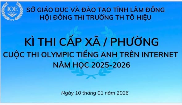 Ngày 10/01/2026, Trường Tiểu học Tô Hiệu đã tổ chức thành công Kì thi Olympic Tiếng Anh trên Internet cấp xã, phường năm học 2025–2026 trong không khí nghiêm túc và sôi nổi.
